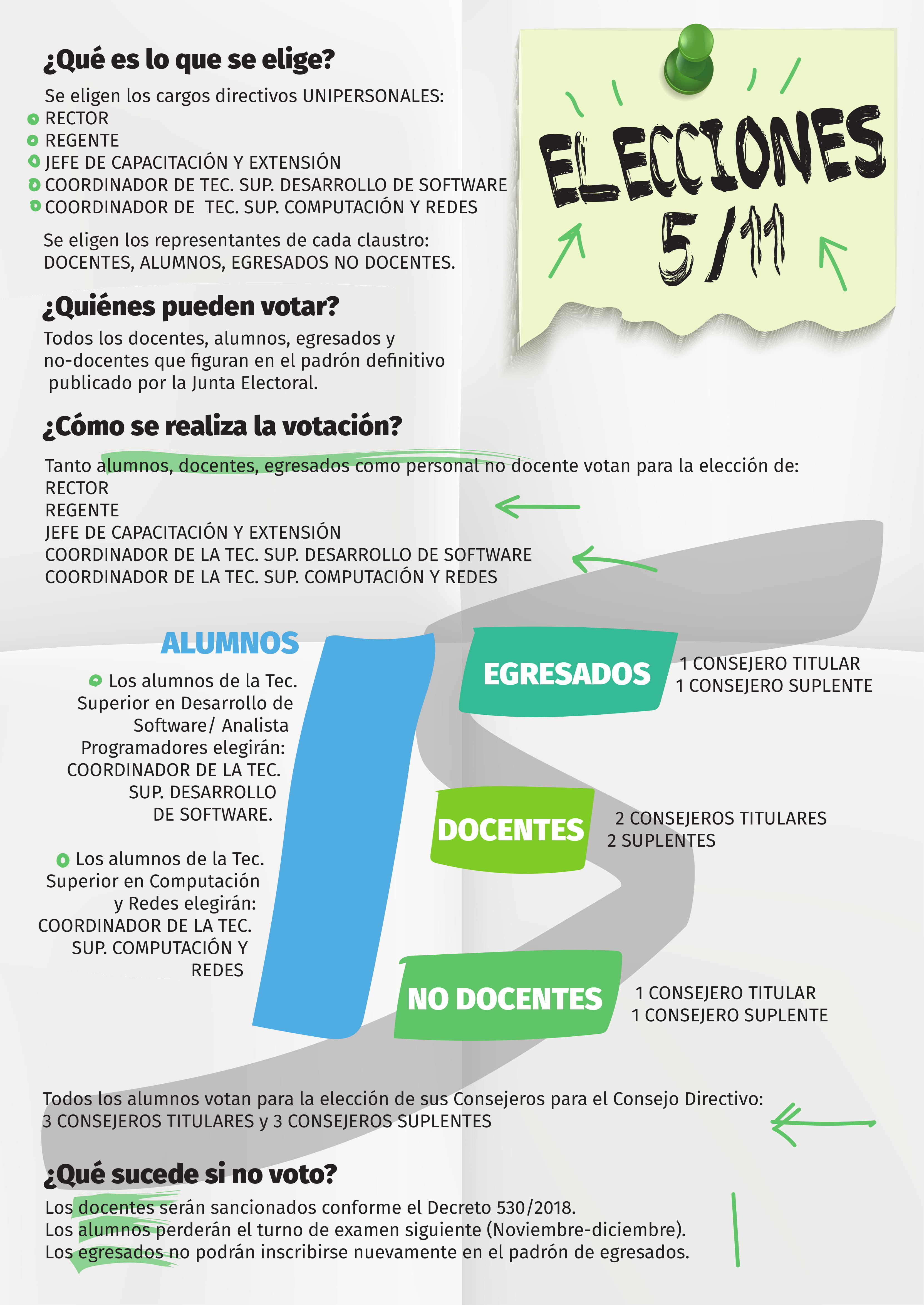 En San Rafael, Provincia de Mendoza, a los 11 días del mes de noviembre de 2019, siendo las 20.30 hs. nos constituimos como Junta Electoral del IES 9-012 San Rafael en Informática, Daniela Gómez, DNI 23081736, y Federico Daín, DNI 23736516, por el claustro docente; Marcela Gallo, DNI 20457749, por el claustro No Docente; y Diana López, DNI 25259878 del claustro Alumnos. Dejamos constancia que la representante del claustro Egresados (Claudia Carrión, DNI 23067113) se encuentra bajo licencia médica.